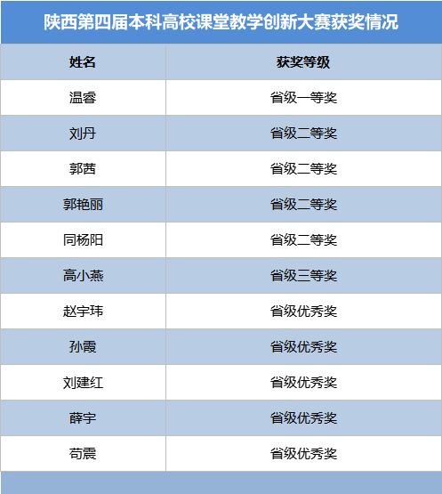 近日,陕西省教育厅公布了第四届陕西高校课堂教学创新大赛获奖教师名单,我院郭茜老师荣获省级二等奖。