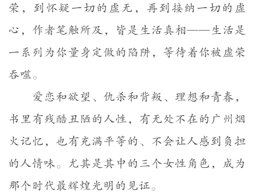 又过了8年后的今天,他终于携新书《虚荣广场》归来,此时距离他的第一本长篇小说《红X》出版已整整20年。在《虚荣广场》“后记”中他写道:“在四十岁之前,总觉得有非我不可的未来正在等待,不必着急……于是我开始要写一本有关虚荣的书,写生活为每个人量身定做的陷阱。写一个人将近二十年里从虚荣到虚无再到虚心的历程。最重要的是,写我生活了将近二十年的广州,杨箕村一带的记忆。”