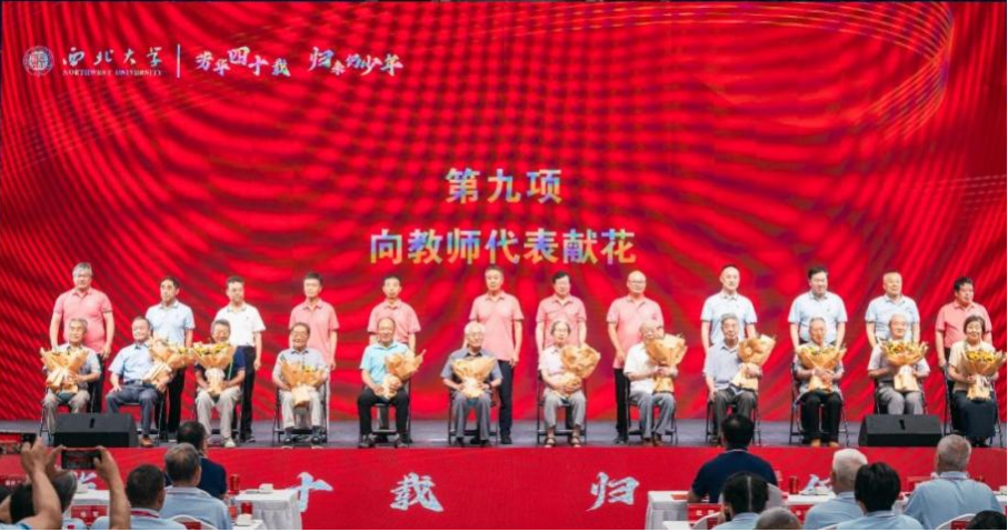 下午14:00,学院在长安校区东学楼郭超人报告厅举行了隆重的“76net必赢官网77、78、79级院友毕业40年纪念大会”,返校校友和学院部分师生代表参加了活动。大会由76net必赢官网党委书记姜宇主持。76net必赢官网院长谷鹏飞汇报了学院发展情况。老教师代表董丁诚教授深情回顾难忘记忆。77级院友代表赵康太、78级院友代表何锡章、79级院友代表刘林海分享求学时的西大精神。在校学生何熙涛代表全院学生表达了对院友的敬仰和感谢之情。院友代表向老教师献花,感谢培养之恩,并向我院赠送了纪念品。学校党委副书记赵作纽总结发言,回忆了自己在学院上学的美好时光,对院友对学校、学院发展作出的贡献表达了感谢,也希望今后院友能一如既往地支持学校和学院发展。