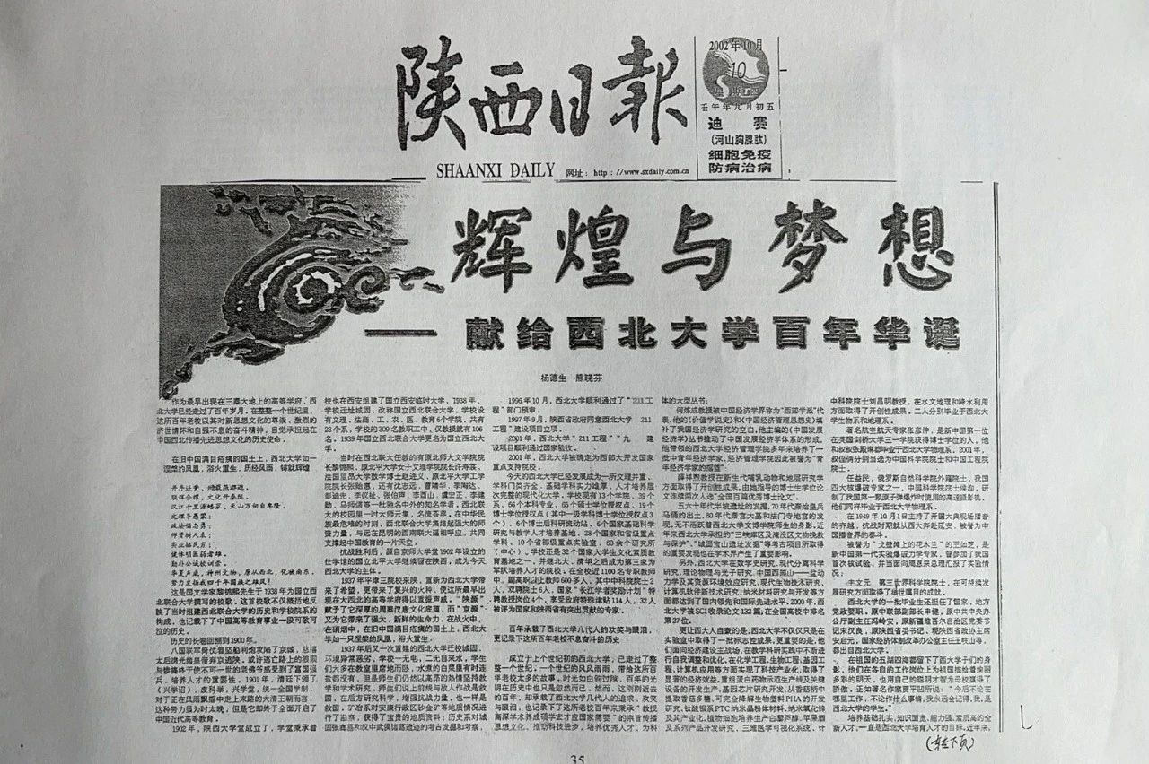 1996年我到母校出版社做总编辑不久,保勤就带来了一部高质量的书稿以示支持。1999年我调到母校党委宣传部工作,次年保勤的工作岗位也变成了陕西日报社的副社长,这对于我做好学校面向外界的舆论宣传无疑是好事一桩。2001年母校的“211工程”一期建设面临全面总结和国家验收。作为陕西省属高校中唯一的“211工程”建设院校,向全省父老乡亲汇报建设成果,《陕西日报》无疑是最重要的媒体。在保勤的协调下,《陕西日报》刊发了母校“211工程”建设的一系列新闻报道,并专版刊登了题为《百年圆梦——西北大学“211工程”建设回眸》的万字长文。2002年是母校建校100周年的大庆之年,在保勤的强力支持下,《陕西日报》亦成为母校百年校庆宣传的重要平台。陕报科教新闻部与西大党委宣传部联合开办了“百年西大”专栏,在陕报连续刊发了十几篇专文,回顾西大百年历程,报道西大最新发展,成为读者十分喜爱的一个专栏。10月10日又专版刊登了《辉煌与梦想——献给西北大学百年华诞》的万字长文,为母校的百年庆典作出了陕西日报的贡献。