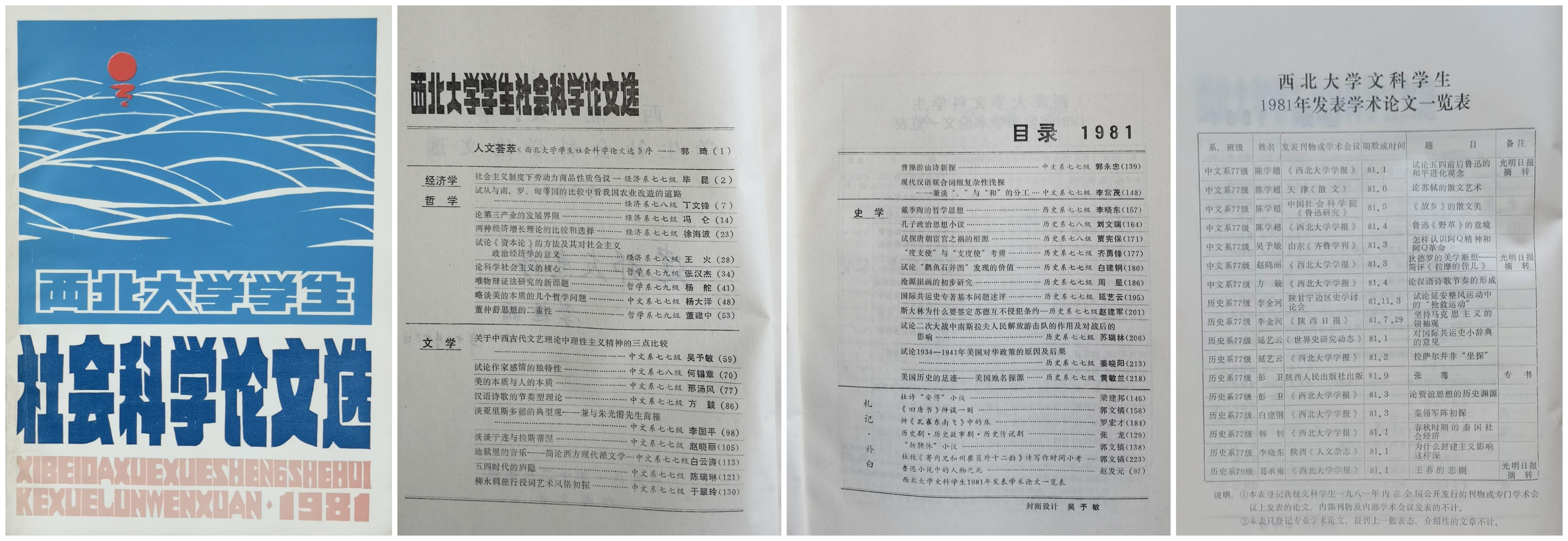 郭校长倡导编印了西北大学本科生的第一册社会科学论文选,他以“人文荟萃”为题,欣然为这本“新三级”(即七七、七八、七九级)在校本科生撰写的包括了文学、史学、哲学和经济学等学科内容的论文选作序。郭校长以充满欣慰和期望的笔触写道:我校第一册学生社会科学论文选编印出来了。它像一畦碧绿葱翠的苗圃,十分令人喜爱。想到几年之后,这些小苗将要长成茂林嘉卉、栋梁之才,更加感到欢欣鼓舞。良种落进肥沃的土壤,就能茁壮成长。同学们在大学校园里,有党的辛勤培育,有老师的殷切指导,加上自己的刻苦努力,是应当有较快的进步的。大学时代,是青年确立革命理想和专业方向的时代。许多同学在认真掌握基础知识,扎实进行基本训练的同时,找到了自己的“生长点”,对某一方面作比较深入的研究,写出了一些有质量的学术论文,这是十分可喜的现象。……十年浩劫耽误了你们的青春,使你们走过了一段曲折的路程。从这些论文可以看出,大家已经抖落了历史的风尘,并把这段经历化成了认识社会的宝贵财富。我们的祖国正需要大批的哲学家、史学家、文学家和经济学家,愿你们树立雄心壮志,在马列主义思想指导下,敢于创造、敢于冒尖,努力攀登社会科学的高峰。……这册学生学术论文选,是对我校文科教学质量的一次检查,也是对文科同学学习水平的一次检阅。希望由它引出更多的科学研究成果,引出一个你追我赶、相互竞赛的学习研究风气。从而使我们西北大学真正成为人文荟萃之地,造就出更多的人才,为我国社会科学研究作出更大的贡献。正是在郭校长的鼓励和老师们的指导下,那时的本科生有的在读期间就在报刊上公开发表了学术论文、文学作品,撰写出版了专业书籍,有的在本科一、二年级时就提前考取了研究生。