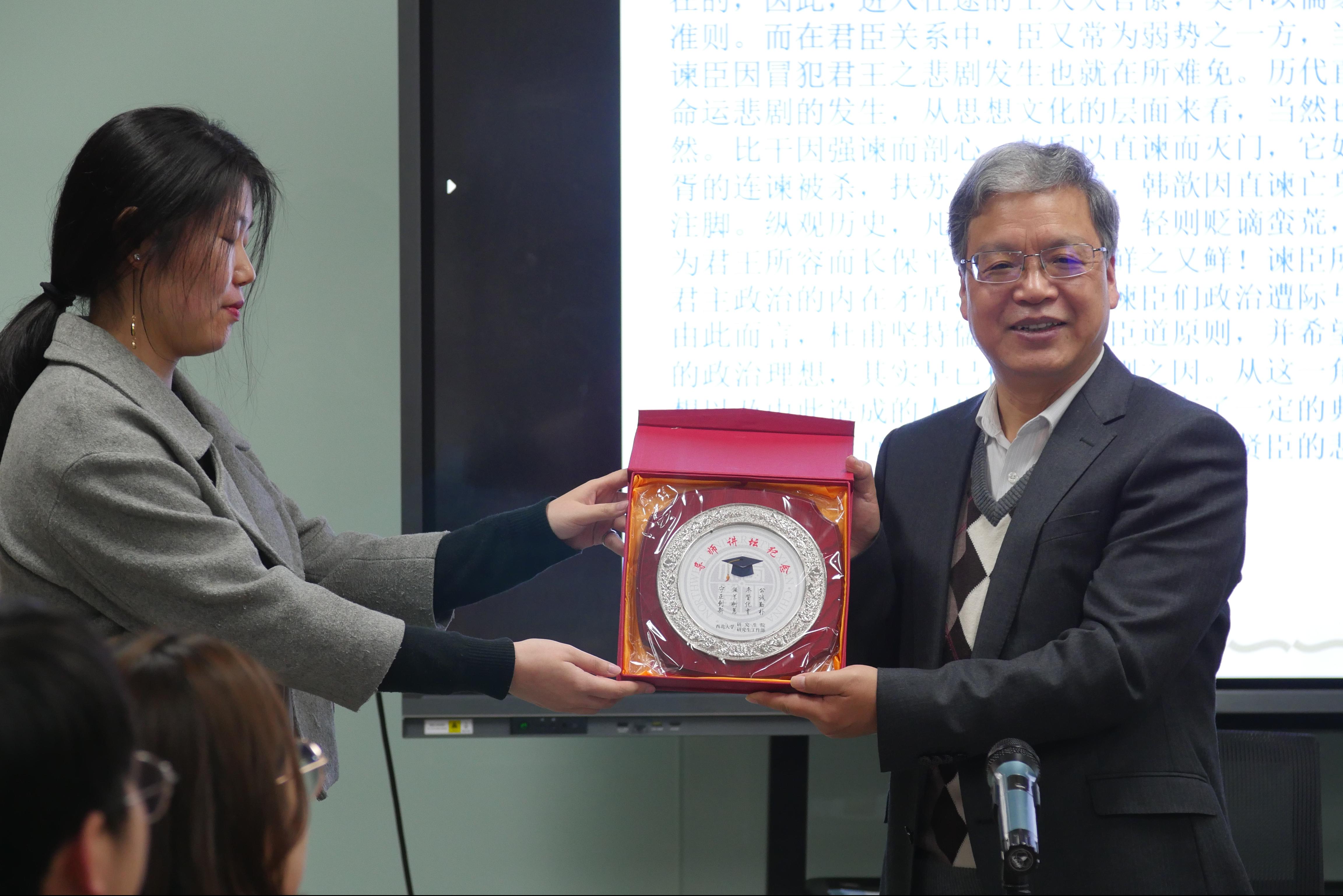 在提问环节,李芳民老师就杜甫被放逐前后对“致君尧舜”理想是否有变化等问题与在座的同学进行了探讨,给出了深刻而独到的见解,在场师生均感获益匪浅。