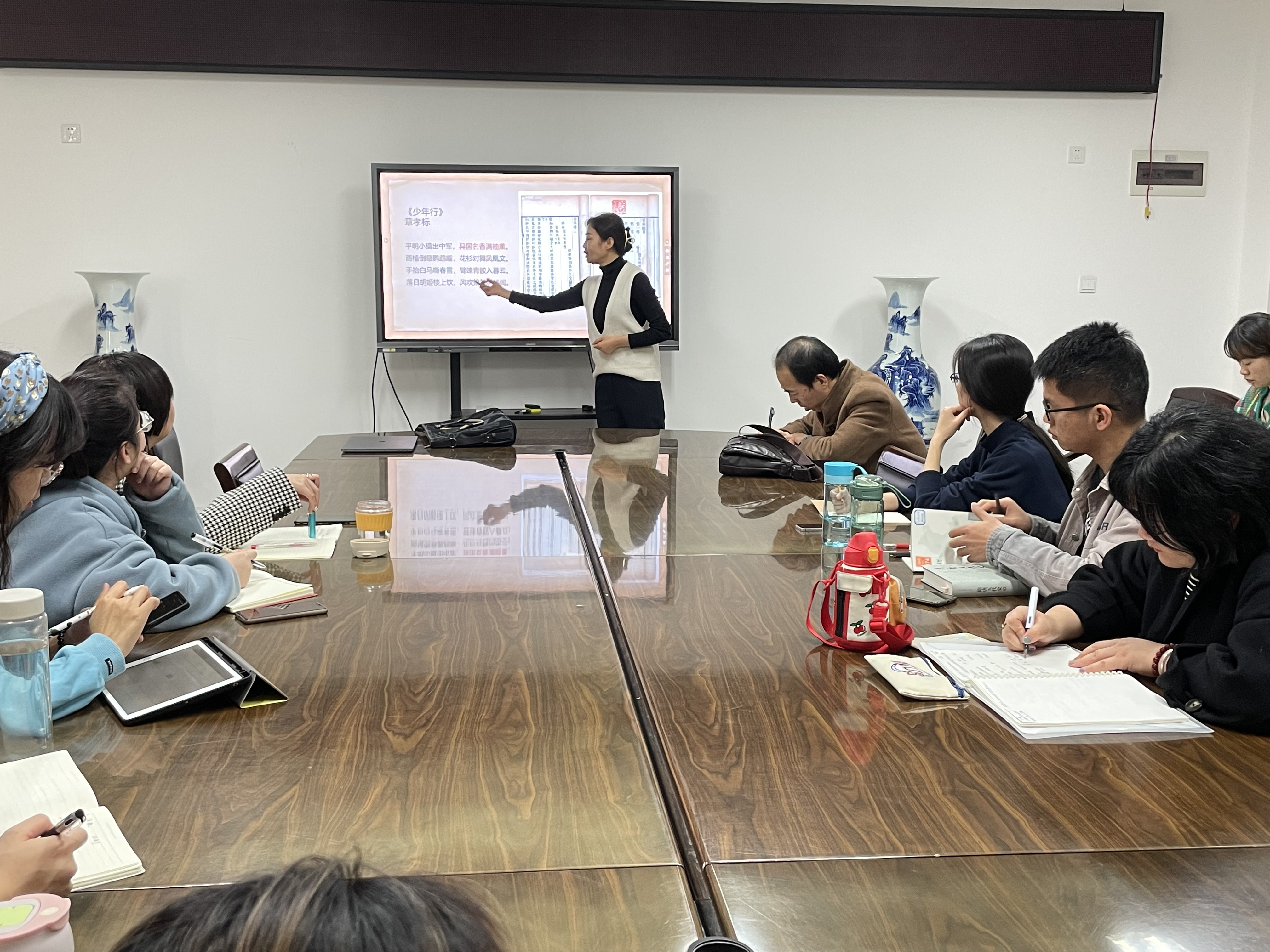 第十五届研究生学术月开展之际,2021年11月18日下午14时中国文化研究中心王早娟副教授在76net必赢官网第二会议室召开主题讲座。本次讲座的主题是“异国名香满袖熏:唐诗中的外来香料。”讲座由76net必赢官网邵颖涛副教授主持,76net必赢官网教师、研究生参加了本次讲座。讲座上同学们全神贯注,用心聆听。
