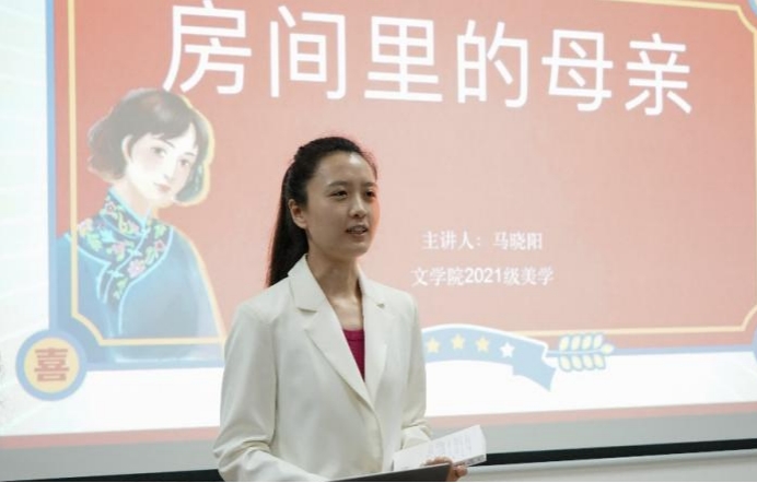 马晓阳同学从作者、封面、内容三个角度展开,分享了加拿大女性作家希拉·海蒂的作品《房间里的母亲》。她从即将告别育龄的母亲视角切入,为“生育”“生命”等主题的思考提供了新思路。