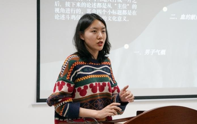 姜美如指出,《深层游戏》被学术界认为是极具代表性的著述,在阅读时需要着重关注如下三个问题,即格尔茨如何分析出斗鸡仪式的众多文化含义、其分析路数如何体现厚描方法论、文化意义间的关系及全文的基本线索是怎样的。她从文章的七个小标题着眼,详细讲述了作者格尔茨通过参与违法斗鸡并与当地人共同逃跑的行为深入田野调查,呈现斗鸡仪式的文化意义,这一过程中田野调查的视角也从一开始外来人角度逐渐转变为当地人视角。姜美如表示,对于巴厘人而言,斗鸡是一种情感教育,通过斗鸡仪式获得对人与人之间内在关系的感知。最后姜美如分享了纳日碧力戈、李斌、钟秋然等学者对斗鸡仪式研究的主张及局限之处,拓展了同学们对斗鸡仪式文化意义的认知。