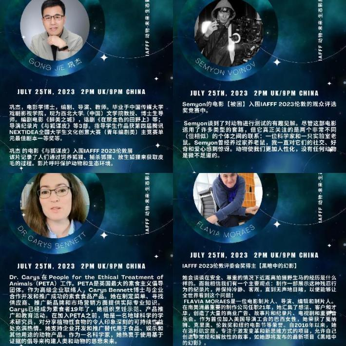 7月25日英国伦敦时间晚2点(北京时间晚9点),IAFFF 2023 London与全球最大的动物保护官方组织之一PETA邀请我院巩杰教授参与线上座谈会,共同探讨了包括动物在内的伦理问题,以及在电影制作过程中如何确保它们的安全,探索电影行业中动物拍摄的相关问题,形成可持续发展的创新解决方案。