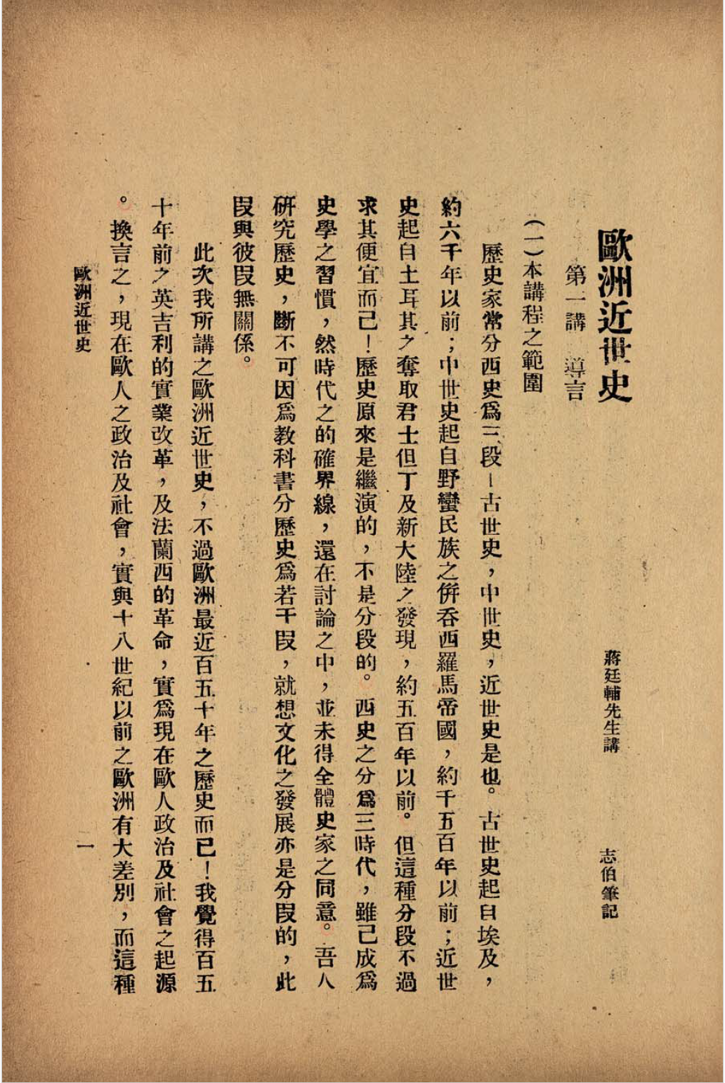 《欧洲近世史》 蒋廷辅(黻)先生讲;志伯笔记