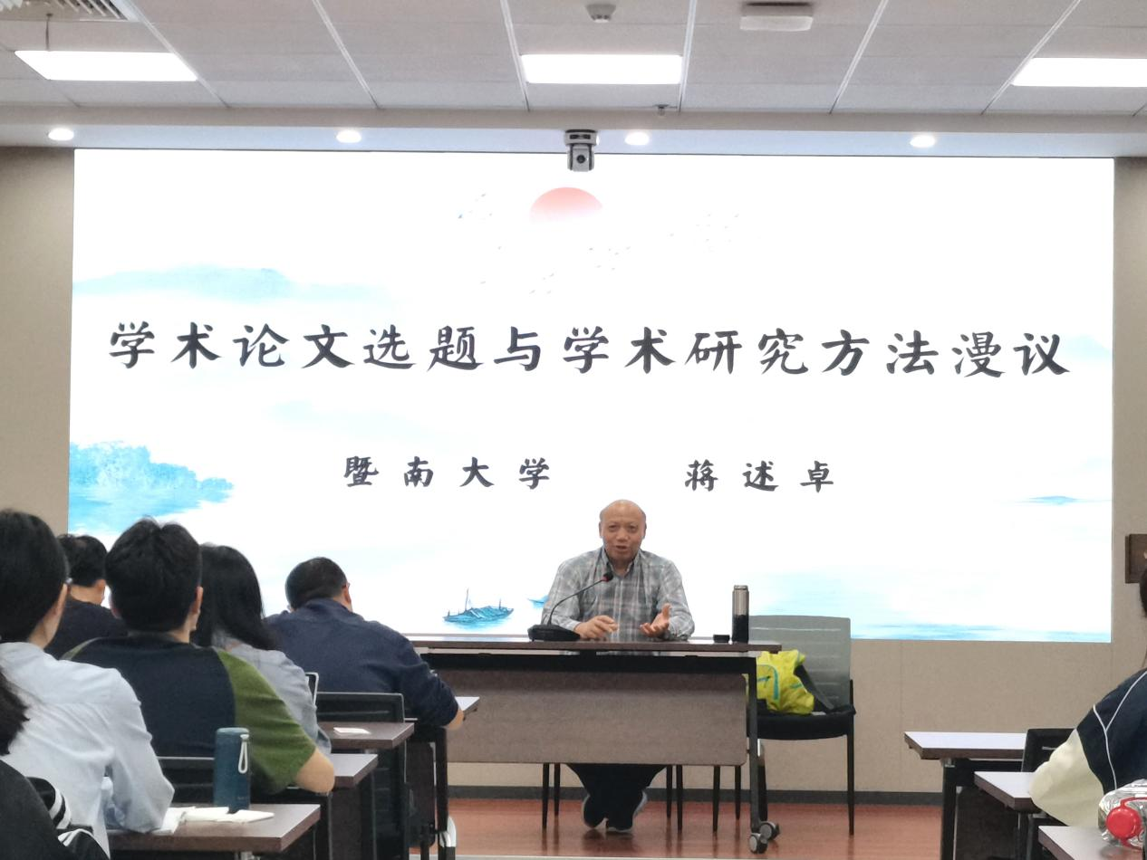 2024年10月21日晚19:30,暨南大学蒋述卓教授在我校长安校区东学楼7层701会议室作了题为《学术论文选题与学术研究方法漫议》的学术讲座。本次讲座由76net必赢官网院长谷鹏飞教授主持,我院杨新平、陈海、高翔、何明霞、陈皓钰老师和六十余名博硕士研究生参加。
