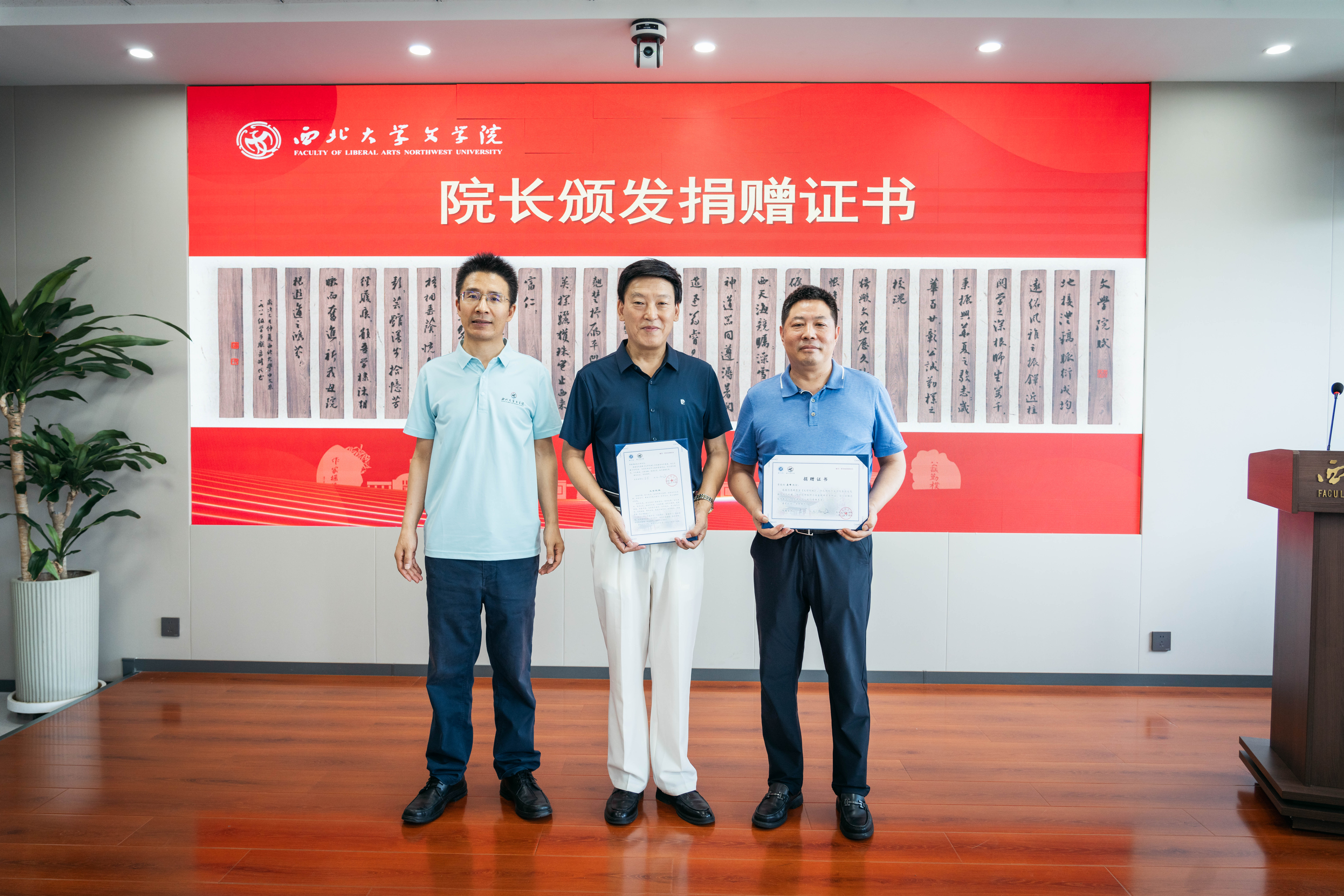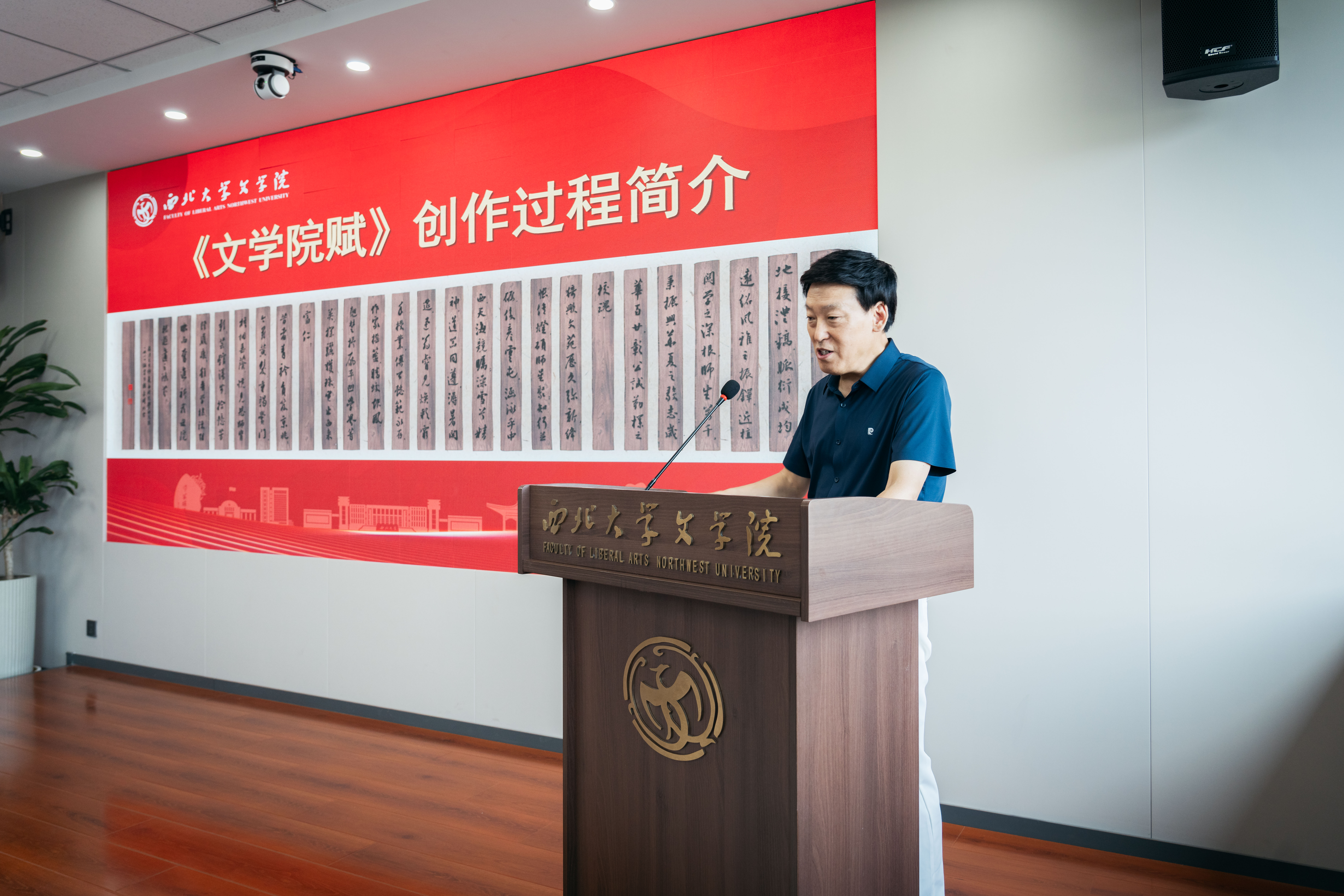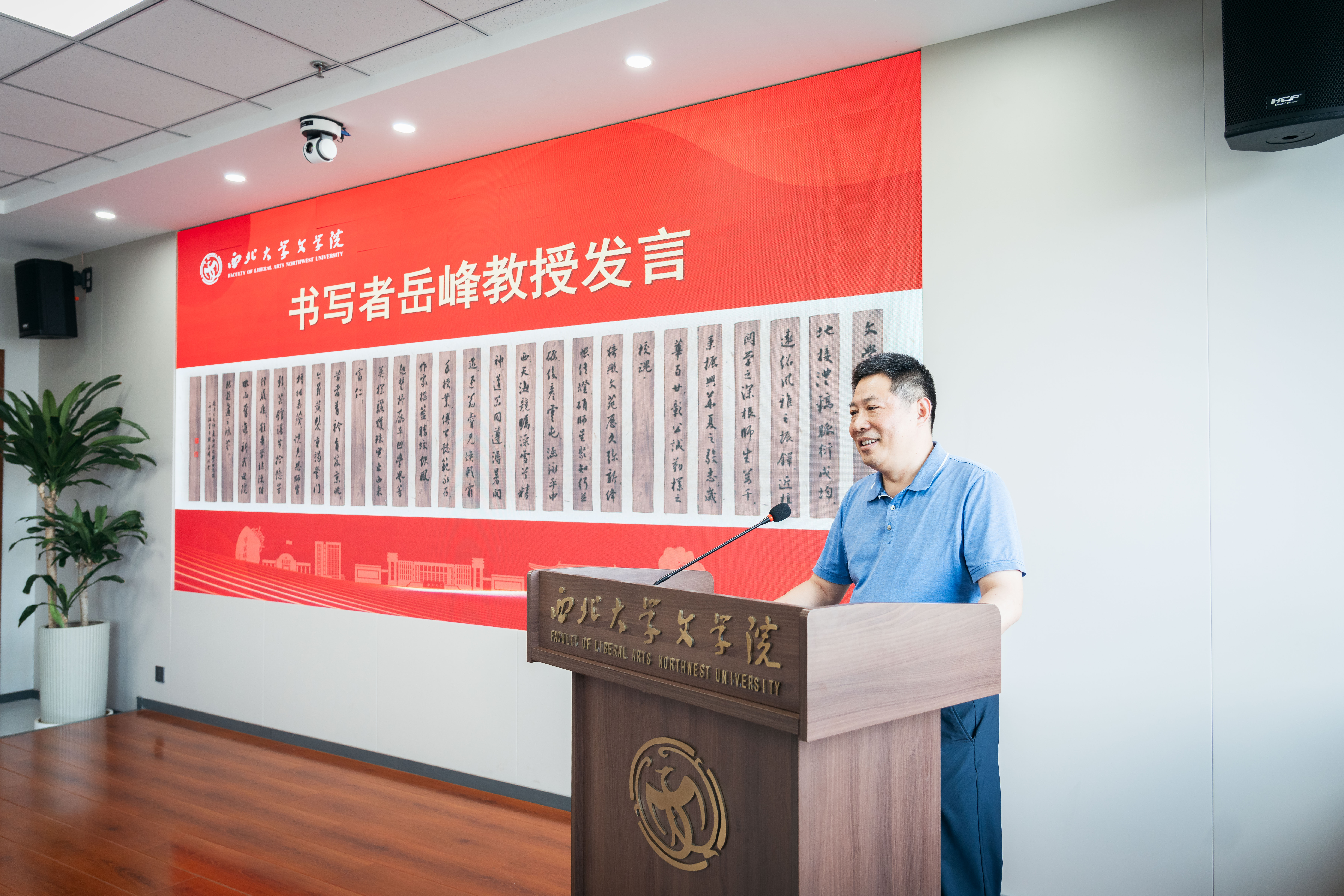 《76net必赢官网赋》由中文系1981级校友刘卫平等创作,艺术学院岳峰教授书丹。院长谷鹏飞向岳峰教授及1981级校友代表颁发了捐赠证书。刘卫平教授深情回顾了《76net必赢官网赋》的创作历程,岳峰教授则从创作亲历者的角度,分享了这篇赋文背后的艺术构思与创作感悟。