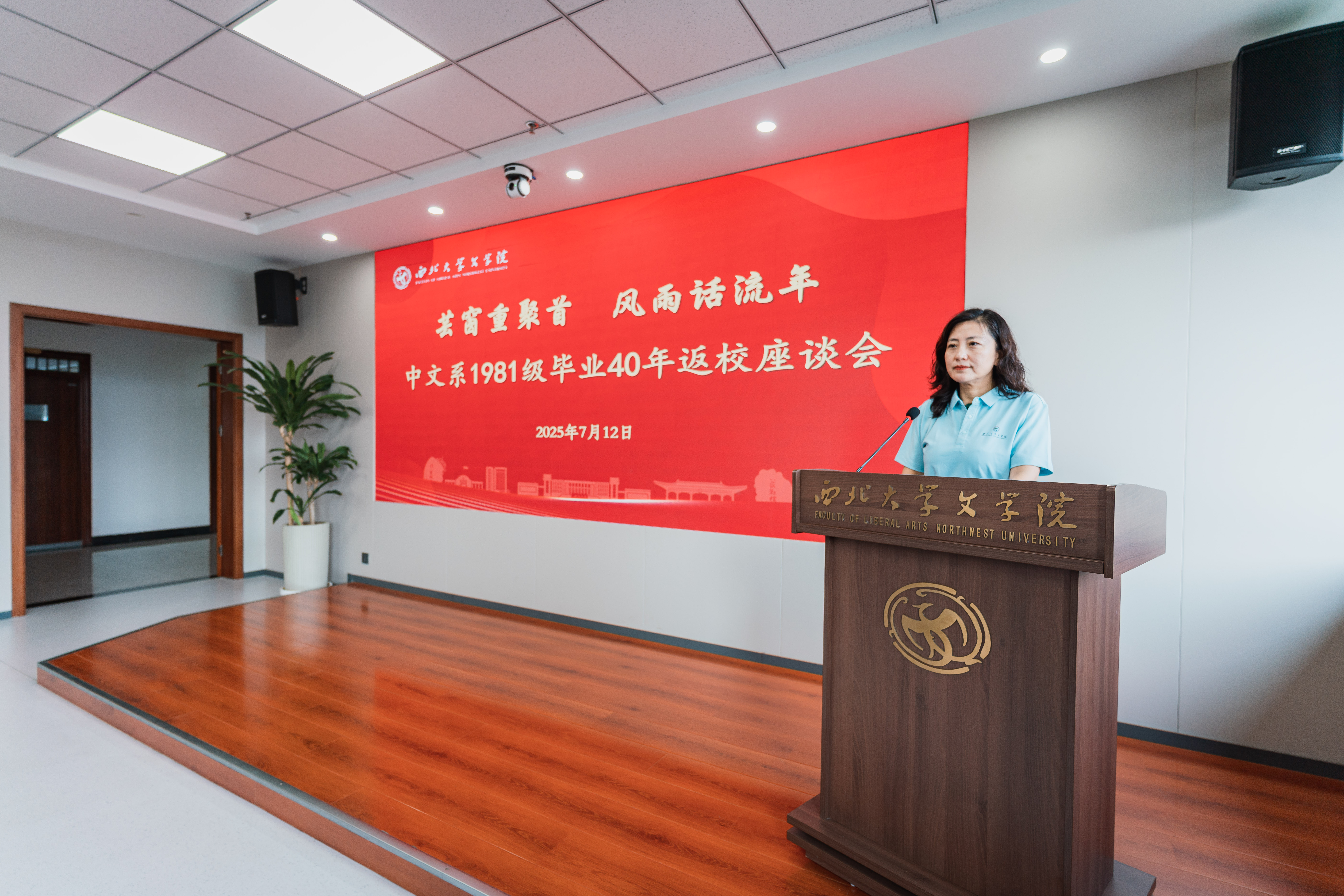 2025年7月12日,我院1981级中文系校友毕业40周年返校座谈会在长安校区隆重举行。校党委书记蒋林,1981级任课教师代表张孝评、刘百顺、聂益南,国内合作与校友工作处处长崔延力,副处长燕来,76net必赢官网班子成员、教师代表及中文系1981级返校校友参加了座谈。座谈会由学院党委书记姜宇主持。