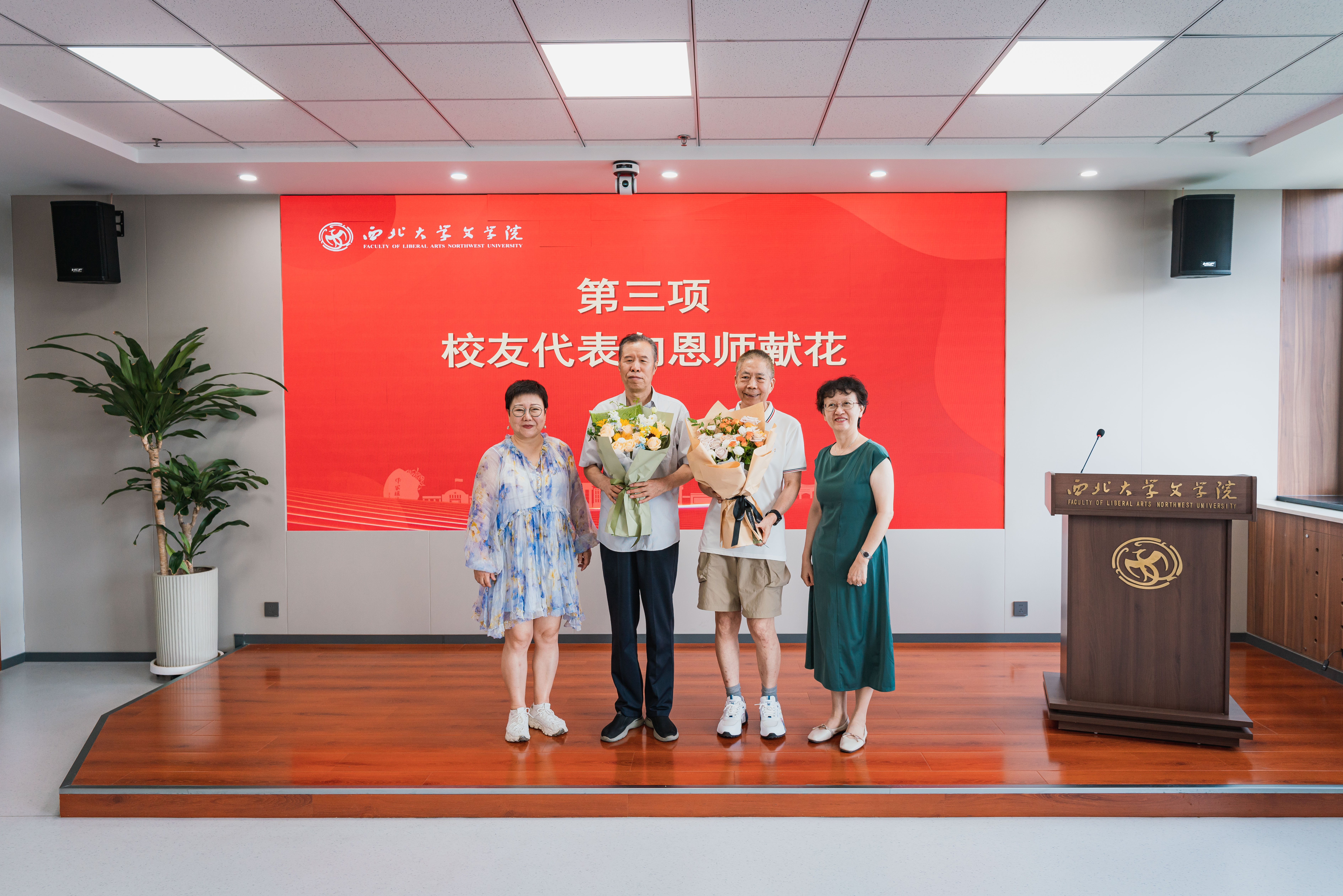 教诲如春风,师恩似海深。校友代表向刘百顺老师、聂益南老师献花,表达最崇高的敬意和最深切的祝福。