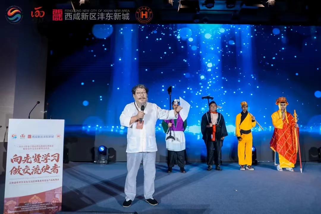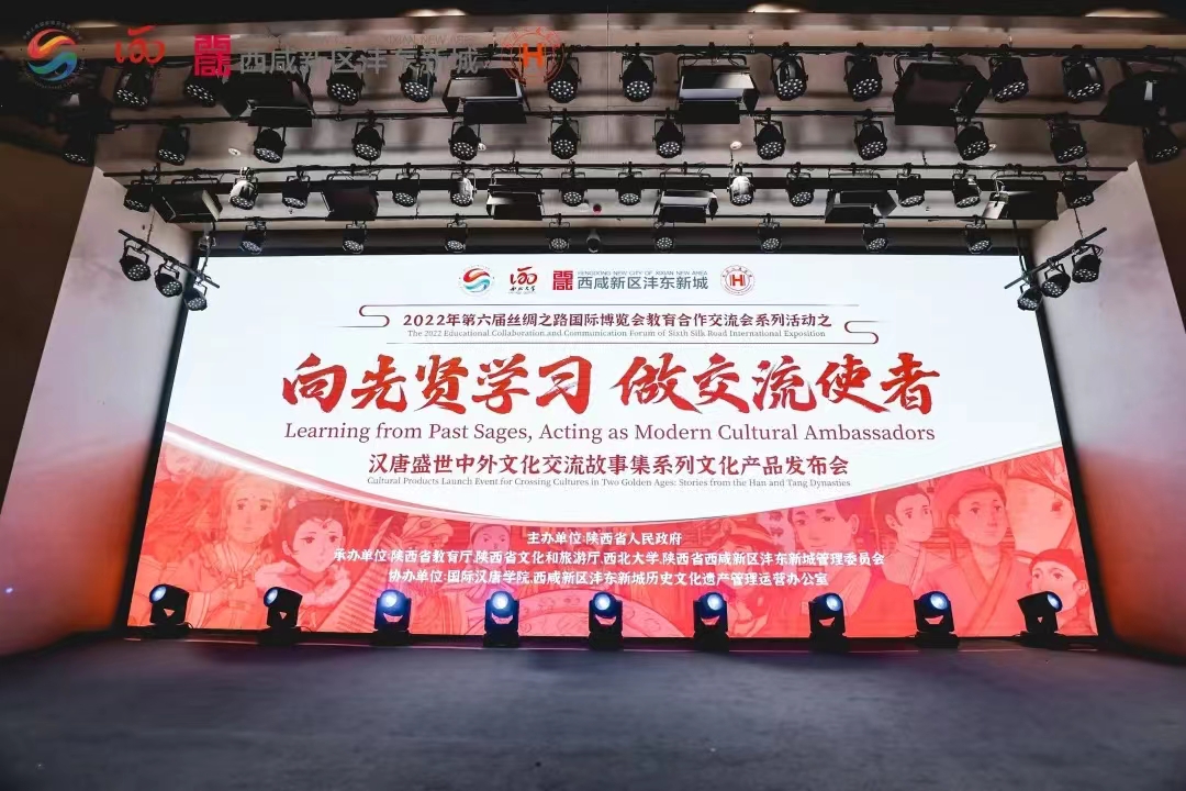 2022年7月16日上午,由陕西省教育厅、陕西省文化和旅游厅、西北大学和陕西省西咸新区沣东新城管理委员会主办的第六届丝绸之路国际博览会教育合作交流会之“向先贤学习,做交流使者”——汉唐盛世故事中外文化故事集系列文化产品发布会在西咸新区沣东自贸新天地会议中心举办。