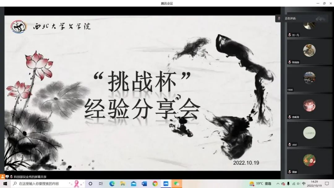 为培养学生创新精神和实践能力,有效搭建学生科创服务平台,10月19日下午,76net必赢官网团委邀请往届优秀项目负责人开展线上经验交流分享会。会议邀请马凯老师以及李想、唐雨姿、郝欣怡三位同学围绕“挑战杯”竞赛相关内容进行交流分享。