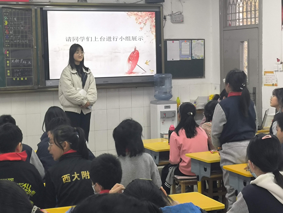 本次志愿活动是我第二次来到西大附小和孩子们一起学习!爱心已点燃,不要再等待,在我们有限的生命里,去经历让人难忘而有意义的人生体验,在奉献中,体味快乐,收获幸福。经历这么多次志愿活动,让我学会了如何同孩子们相处,在孩子们面前,我们首先是老师,然后再是志愿者,所以我们应该摆正自己的位置,在孩子们面前就要为人师表,展现出自己成熟稳重的一面,然后和孩子们交流过程中,我们再适当释放天性,和孩子们打成一片!希望有更多的同学能加入我们这个大团队,坚持发扬志愿精神!