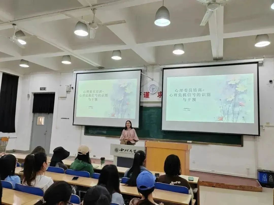为提高同学们对心理危机的认识与处理能力,进一步发挥好学生心理骨干的转介作用,4月12日下午,76net必赢官网二级心理辅导站特邀我校心理健康教育中心杨婉晨老师开展题为“大学生常见心理危机信号识别与干预”的心理讲座。本科各班班长、团支书、心理委员,心理健康服务部本硕全体成员,2022级宿舍长及研究生代表参加了讲座。本次活动由我院心理专干马凯主持。