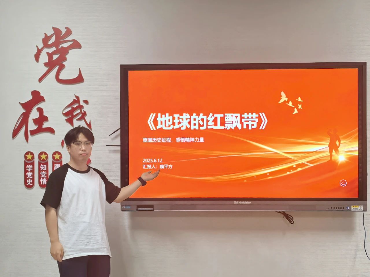 马克思主义学院魏平方同学分享了魏巍的《地球的红飘带》。主讲人指出本书再现了长征这一“二十世纪人类最伟大的精神行军”,其叙事既具历史纵深感,又充满艺术感染力。在解读环节,主讲人创新性地采用“微观史”视角,从书中“小人物”切入,如无私奉献的炊事员、坚韧不屈的“小红军”、无畏担当的老农、坚守岗位的号手,生动诠释了“人民是历史的创造者”这一马克思主义唯物史观。最后,主讲人将长征精神与新时代语境创造性结合,强调这部“用鲜血写就的教科书”所蕴含的信仰之力,正如永不熄灭的火种,为当代青年在民族复兴征程上提供了强大的精神坐标,号召大家以“红飘带”精神照亮新时代的赶考之路。整场分享既有理论深度,又饱含情感温度,展现出经典作品的永恒魅力。