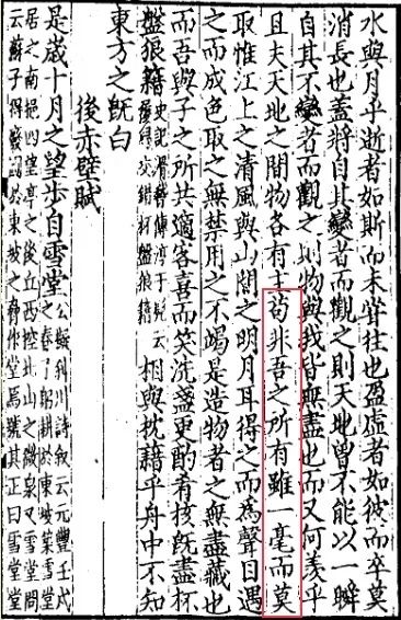 “苟非吾之所有,虽一毫而莫取”,出自苏东坡贬谪黄州所作《赤壁赋》。
