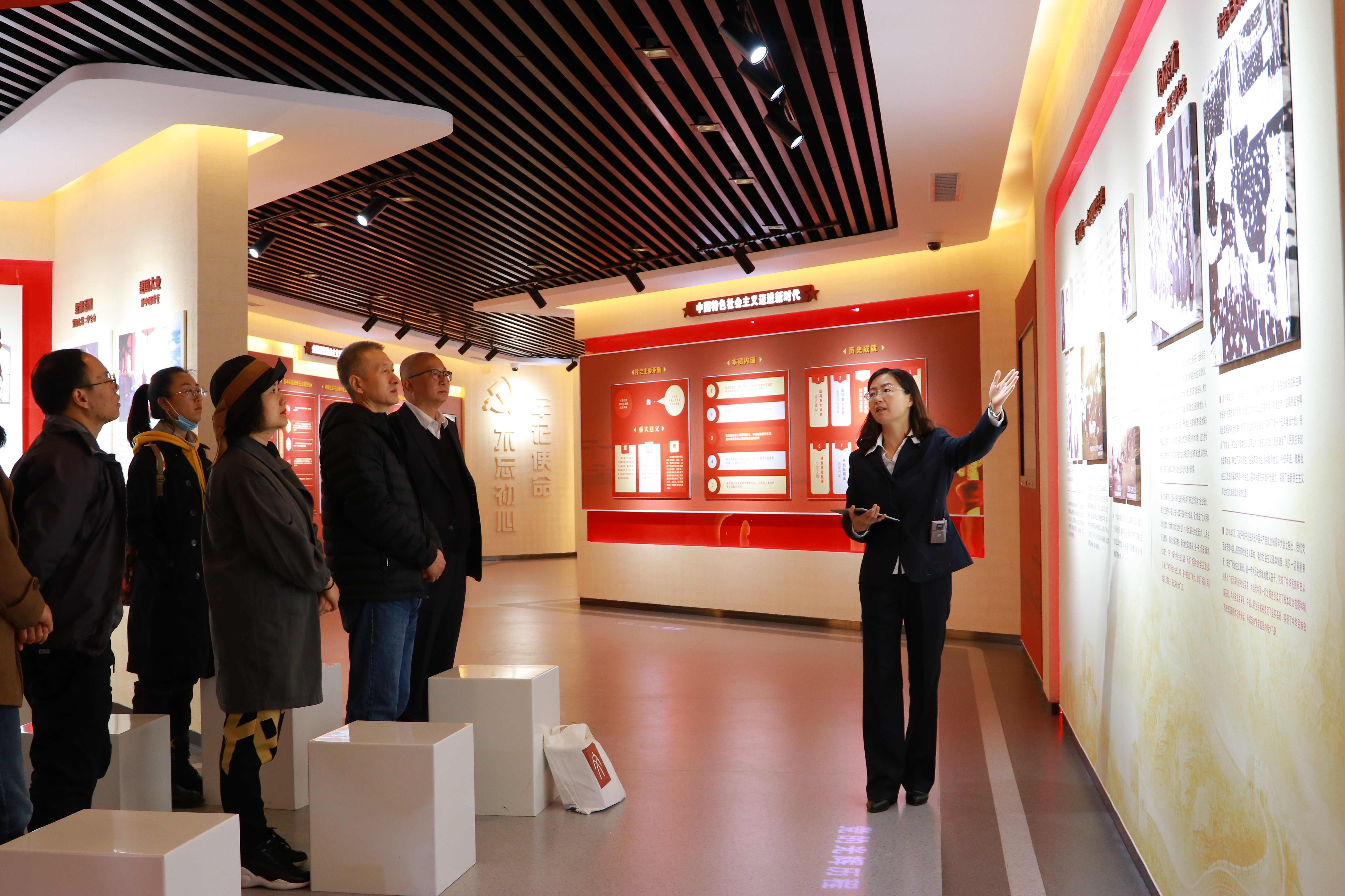 在主题教育馆听取讲解