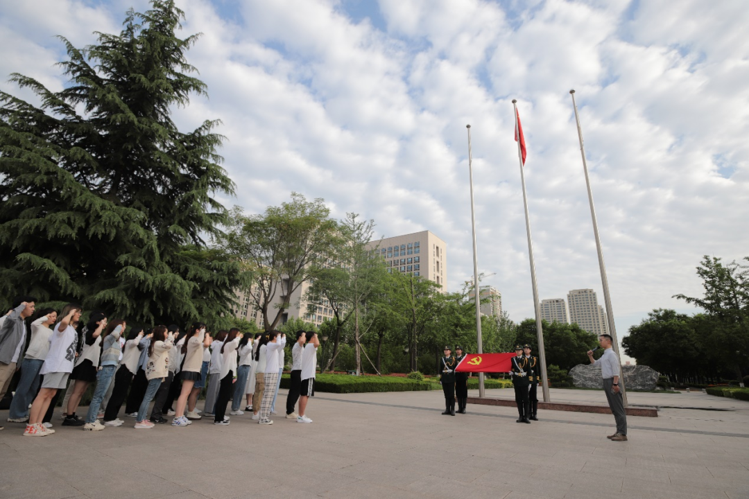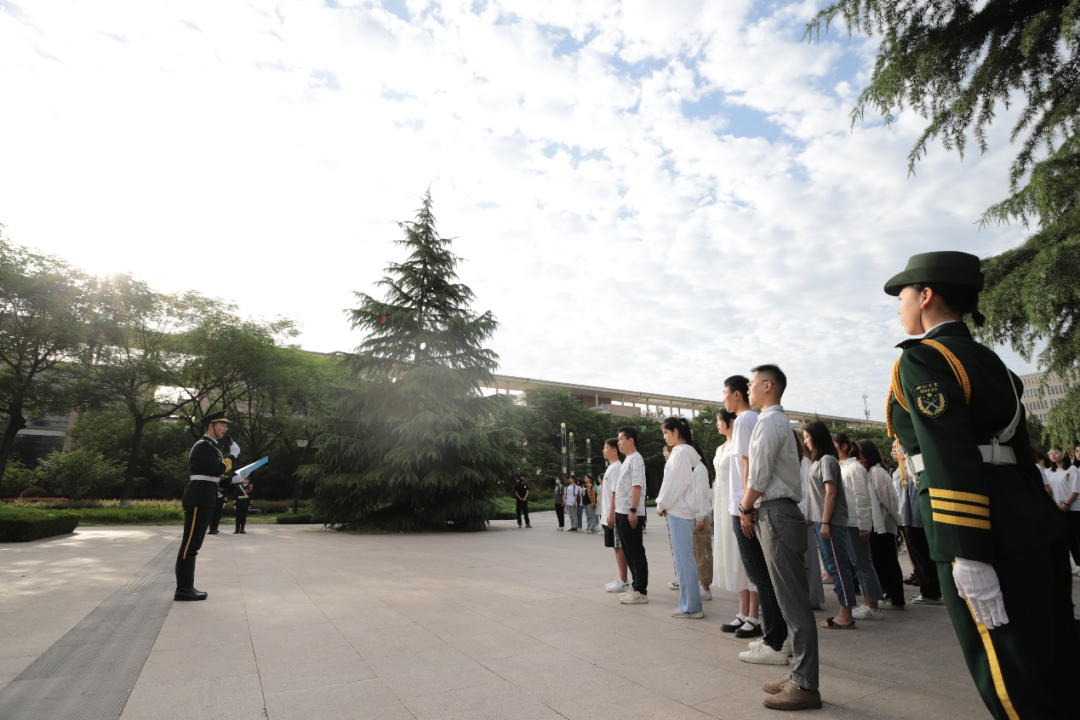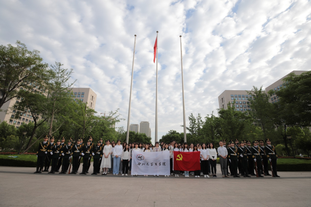 2021年5月24日上午,我院与学校国旗护卫队于长安校区北广场联合举行“重温入党誓词,不忘初心,牢记使命”庆祝建党100周年主题活动。76net必赢官网本科生党支部书记殷大惟老师、学生党员和入党积极分子、院青马班成员参加了此次活动。
