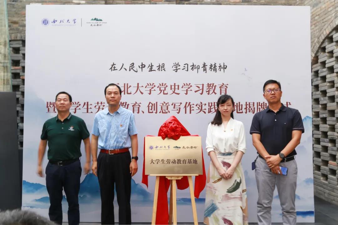活动现场,校党委副书记吕建荣、团委书记寇嘉,学院党委书记赵强与天朗控股集团领导为“西北大学大学生劳动教育基地”“西北大学大学生创意写作实践基地”揭牌。我院2020级硕博党支部书记杨萌作为学生代表发言,抒发了观影《柳青》、学习柳青精神的感想,表示作为学生党员和西大文苑学子,要以庆祝建党100周年为契机,坚定理想信念,牢记初心使命,时刻以柳青先生等革命先辈为榜样,在奋斗中挥洒青春热血,做有筋骨、有道德、有温度的新时代青年。