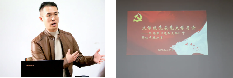 殷大惟老师首先点出了本次学习的主题——青春,通过讲述《建军大业》的故事,再现了老一辈革命家在1927年那个特殊的年代的别样青春,革命先辈们以自己强大的青春力量为我们今天的幸福生活埋下种子,给我们留下了我们宝贵的精神财富。