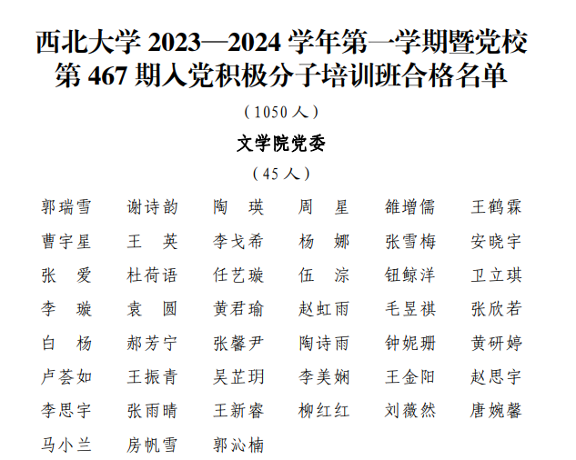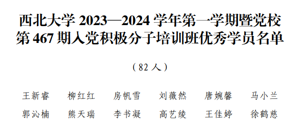 必赢76net线路官网2023-2024学年第一学期暨第467期入党积极分子培训班合格及优秀学员名单