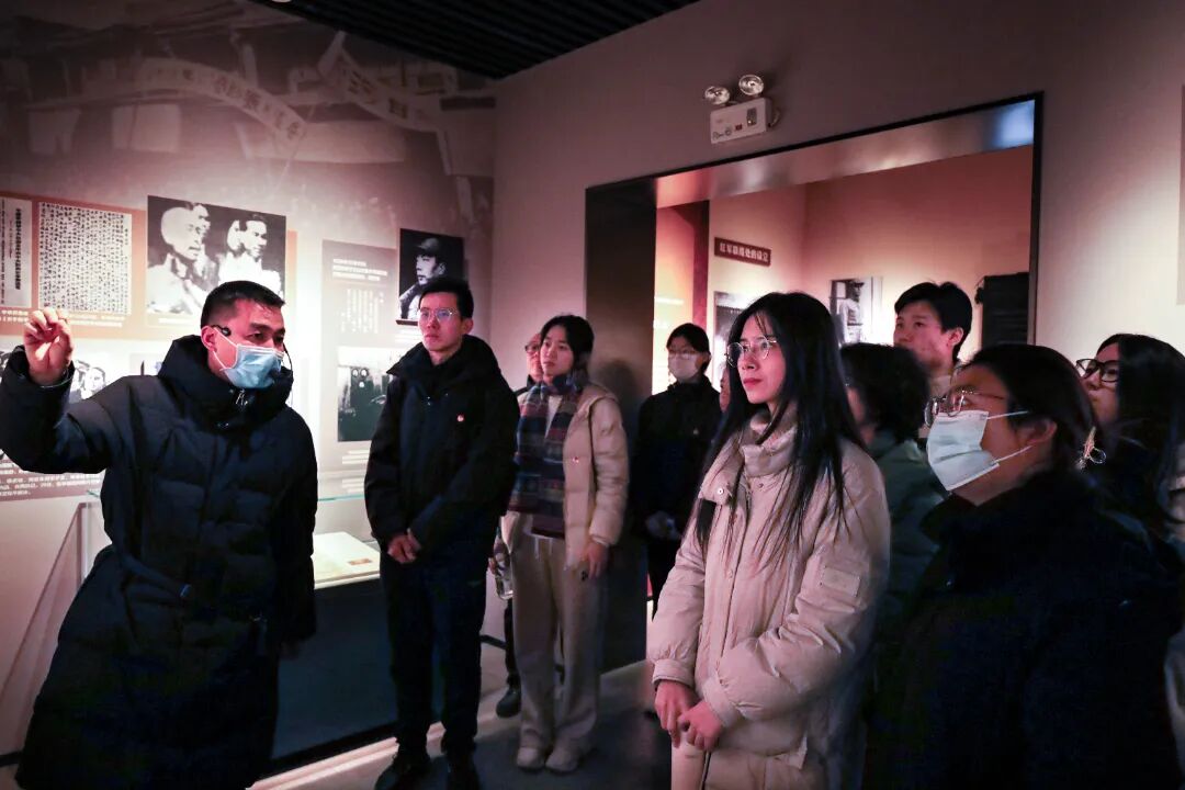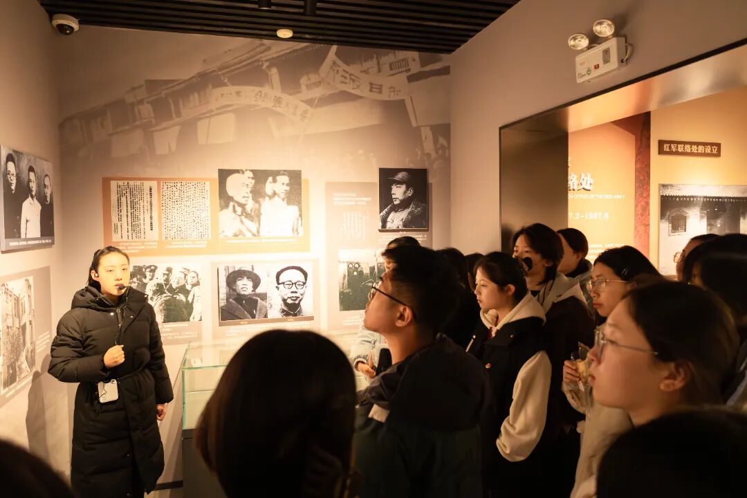 为深入学习党的二十届四中全会精神,贯彻落实习近平总书记关于青年工作的重要思想,引导青年学子坚定理想信念、传承红色基因、勇担时代使命,在纪念中国人民抗日战争暨世界反法西斯战争胜利80周年之际,12月20日,76net必赢官网2025级本科各班级团支部联合校“青马工程”知行一班团支部赴八路军西安办事处纪念馆,开展“传承红色血脉,厚植爱国情怀”主题团日活动。76net必赢官网专职团干部、校“青马工程”知行一班班主任杨崧维,76net必赢官网2025级本科各班级团支部团员代表,校“青马工程”知行一班全体学员50余人参加活动。活动由胡冠琼同学主持。