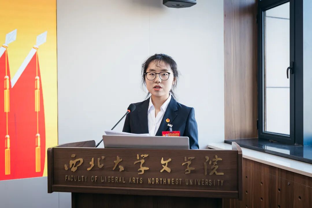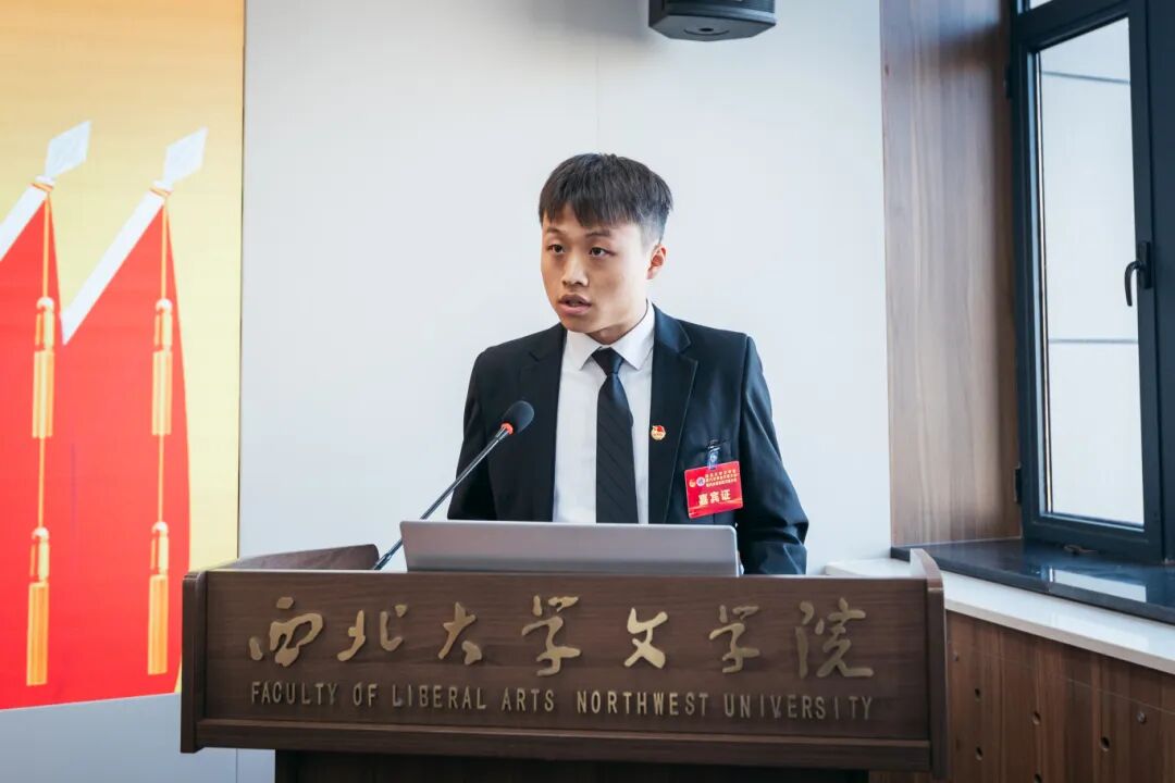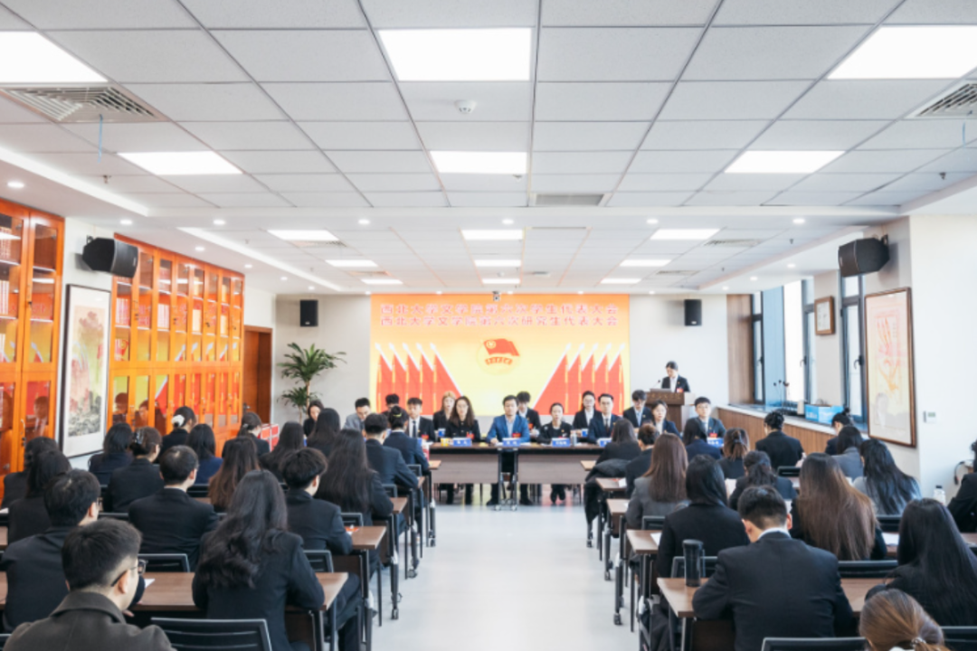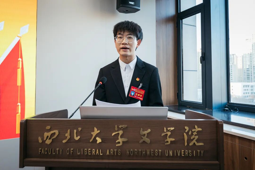76net必赢官网第五届学生会主席团成员曹煜辰、第五届研究生会主席团成员王哲分别作了题为《深学细悟凝聚青春力量,挺膺担当谱写文苑新章》《凝心聚力担使命 守正创新谱新章 团结引领全院研究生在强国建设征程中挺膺担当》的工作报告。