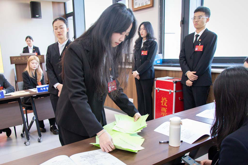 大会预选举阶段,选举产生76net必赢官网第六届学生会主席团、第六届研究生会主席团候选人,总监票人王哲宣布预选举结果。